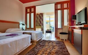 Все номера, в том числе люксы, оформлены в современном стиле. В числе удобств телевизор с плоским экраном, балкон с видом на бассейн или море и собственная ванная комната с душем, феном и халатами.