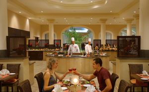 На ужин в ресторане в формате «шведский стол» и в египетском ресторане по меню подают блюда местной и интернациональной кухни. В 6 барах и кафе курортного отеля предлагают местные напитки. В ресторане и баре Paradise Pool можно поужинать при свечах.