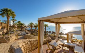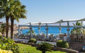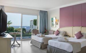 Расположение номера с видом на море (номер 6125) и его близость к пляжу 2 минуты. На пляже всегда найдётся место под солнцем, живой риф с рыбками, чистое море, вкусная и разнообразная еда, голодным никогда не будешь. Из еды было всё, говядина, курица, утка, овощи как свежие так и тушёные, разнообразные гарниры, сладкое, вино, напитки бесплатные коктейли везде. Полотенца меняли каждый день и мыльные принадлежности пополняли каждый день. Крутили фигурки из полотенец. Мы бронировали номер сами и остались очень довольны, особенно когда при выселении обычно это в 12-00 нам на рецепшене (Амир и Рами) продлили номер бесплатно до 15-00 тк вылет был на 19-00. Мы успели все сделать без спешки. Такси за 10е в аэропорт (2 человека). В старый город 20 е (туда и обратно 2 человека). Скучать не приходилось. Бронировали отель "Всё включено ". Приедем снова. Тк тут рыбок можно смотреть не выплывая на яхте с отеля, ими можно наслаждаться с пирса в отеле.