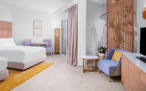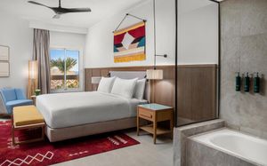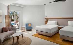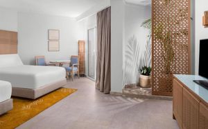 Double Tree By Hilton Sharks Bay Mountain Side идеально подходит для спокойного отдыха, предлагая целый ряд удобств в спокойной обстановке, включая потрясающий пейзажный бассейн с захватывающими водными горками и песчаной зоной. Сочетание великолепного вида на Красное море и остров Тиран с разнообразными захватывающими мероприятиями. Наслаждайтесь вкусными закусками в течение дня и захватывающими развлечениями днем и ночью. Побалуйте себя восхитительными кулинарными впечатлениями в нашем ресторане, где ежедневно подают блюда по системе «шведский стол» с разнообразным ассортиментом блюд на любой вкус. Этот район хорошо известен своими уникальными и красочными рифами для любителей дайвинга. Отель находится всего в 5 км от аэропорта Шарм-эль-Шейха и недалеко от площади Сохо.
