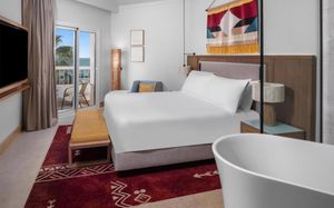 Проживающие в отеле могут пользоваться Гостям пляжной зоной с пляжным баром и главным плавательным бассейном отеля Double Tree By Hilton Sharks Bay Beach Side.