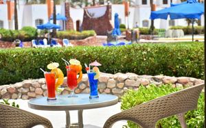 Платно: King Tut Bar, Snack Bar, Ливанский ресторан, Итальянский ресторан, Пляжный ресторан, Обслуживание номеров, Blue Shop, Водные виды спорта, Услуги прачечной. Свежевыжатые соки, импортные крепкие напитки, бутилированная вода, газированная вода, игристое вино, тоник, капучино, турецкий кофе, эспрессо