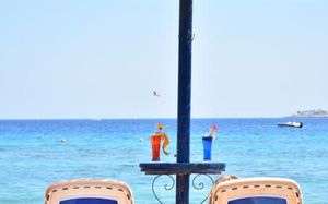На пляже есть два пляжных бара, один из которых включен в концепцию «все включено» бесплатно, а другой — за дополнительную плату