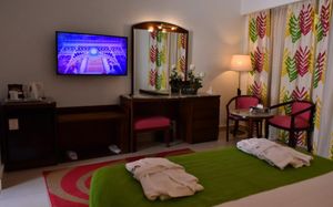 Также в номерах курортного отеля Gafy предусмотрены кондиционер и мини-бар. Из каждого номера открывается вид на живописный сад.