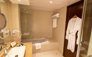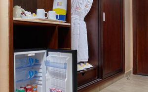 Номер убирают через раз. Мини бар пустой. Зубных щеток и паст нету. Тапочки и халаты принесли только на второй день.