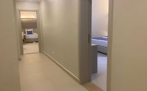 двухкомнатный, в одной спальне – двуспальная кровать 180х200 см, в другой – 2 односпальных кровати 120х200 см + 1 дополнительная кровать 100х200 см (по запросу)