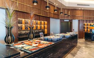 Расписание работы основного ресторана: Главный ресторан Atmosphere (шведский стол): завтрак 07:00-10:00, обед 12:30-14:30, ужин 19:00-22:00, поздний ужин 22:30-02:00