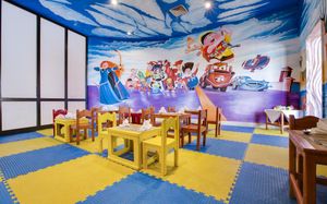 Детская кровать, детские стульчики в ресторане, игровая площадка, мини-клуб...