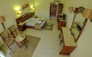 Хорошее расположение отеля. Рядом с пляжем находится пирс с которого удобно входить в море, а так же наблюдать за рыбками. Дежурит спасатель. Номера уютные. Персонал вежливый. В отеле есть магазинчики в которых можно купить сувенирную продукцию. Продавцы не навязчивые. Питание хорошее, конечно особых изысков нет, но голодными точно не останетесь. Отдельное спасибо Горбатовой Наталье за организацию тура. Все подробно объяснила. На территории отеля есть неплохой аквапарк