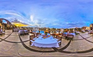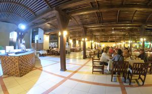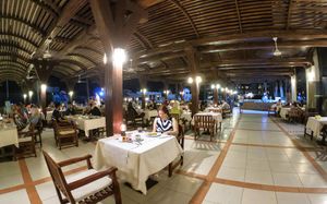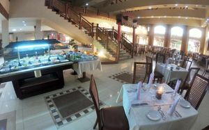 Питание в отеле очень понравилось, вопреки отзывам что еда однообразная. На пляже классный рыбный ресторан! королевские креветки, крабы и кальмары приятно удивили на вкус, так как сложилось мнение что в Египте креветки готовить не умеют. Мы ужинали в этом ресторане два раза и оба раза очень понравилось. Рестораны а-ля карт также достаточно приятный бонус). Отель предлагает 3 вида ресторанов: Восточная кухня, где подавали шашлычки из курицы и типа люля, местные лепешки с соусом, салат. Итальянский ресторан - это конечно далеко не ужин в Милане))), но лазанья и паста достаточно вкусные, а также тот самый Рыбный ресторан на пляже. Основной ресторан также удивлял разнообразием блюд на ужин, много овощей, из фруктов очень вкусная дыня, слива, финики. но завтраки однообразные. Единственный минус - снек-бар на пляже закрывается в 17:00, как и бар на бассейне и в аква-парке. Но не понравились коктейли, пиво покупали сами, в отеле не очень.