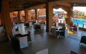 К услугам гостей аквапарк с 11 горками, где могут проводить время как взрослые, так и дети.
