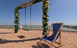 Пляж шезлонги высокие с матрацами на вип пляже