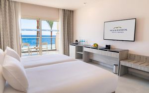 Pickalbatros Royal Grand Resort - Sharm El Sheikh - это уникальный и роскошный 5-звездочный курорт, идеально расположенный на краю плато Ом-Эль-Сид. 400-метровый частный пляж курорта с видом на остров Тиран - одно из лучших в мире мест для дайвинга и сноркелинга - обеспечивает прямой доступ к Красному морю. На территории находятся два красивых и очень известных рифа Paradise и Turtle Bay. Согласно концепции отелей Альбатрос, гости не могут бесплатно пользоваться услугами других отелей сети.