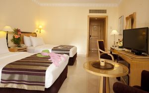 Светлые номера отеля Savoy Sharm El Sheikh оформлены в современном элегантном стиле. В числе удобств каждого номера собственный балкон или терраса с панорамным видом на ландшафтный сад, бассейны или Красное море.