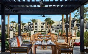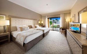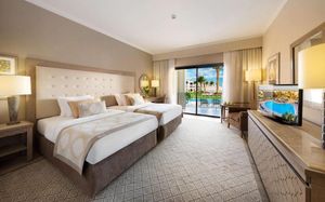 Отдыхали в этом отеле в сентябре 2025 года , спасибо туроператору Милане Ким за организацию поездки. Отель спокойный и уютный, оставил только положительные впечатления от отдыха, красивая, ухоженная, зеленая территория радует глаз, уютные в арабском стиле трехэтажные домики для проживания, номер большой с удобными кроватями, большие ванные комнаты , новые халаты и полотенца, уборка ежедневно, персонал отеля старается вас быстро обслужить, особенно в ресторане и в кафе у бассейнов и на пляже. Пять Аля-карт ресторанов, которые мы посетили это: японский, ливанский, средиземноморский, итальянский и рыбный на берегу, были очень вкусными каждый по своему. Анимация тоже понравилась, ходили на аквааэробику, йогу, зумбу, степайробику и т.д. , чтобы не набрать лишних килограммов, так как питание очень разнообразное и вкусное, смузи клубничное, манго, гуава, апельсиновое, есть мороженое на ужине и днем у бассейнов. Море прекрасное, прозрачная, синяя вода, много рыб. Длинный пирс, возят электрокары. Вход в море неглубокий, особенно во время отлива.
