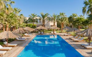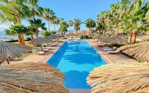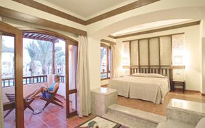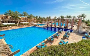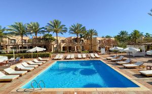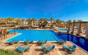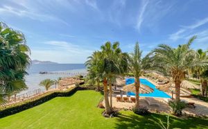 Situated in the Nabq area and directly on the beach, this elegant 5 star hotel offers rooms with balconies overlooking the Red Sea. It features a landscaped pool area and a private beach with jetty to dive off.