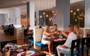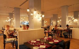 Рестораны a la carte/шведский стол:FUSION Интернациональная кухня. Ужин а ля карт (необходима предварительная резервация) FAJITAS Мексиканская кухня. Ужин а ля карт (необходима предварительная резервация) MUMBAI Мексиканская кухня. Ужин а ля карт (необходима предварительная резервация). Гость должен купить напитки чтобы заказать еду MAFIA Итальянская кухня. Ужин а ля карт (необходима предварительная резервация). Гость должен купить напитки чтобы заказать еду MANDARINE Ливанская кухня. Ужин а ля карт ( необходима предварительная резервация). Гость должен купить напитки чтобы заказать еду THAI тайская кухня. Ужин а ля карт ( необходима предварительная резервация). Гость должен купить напитки чтобы заказать еду Ресторан Beach Club будет открыт на ужин по системе «все включено» с блюдами из морепродуктов по меню. Время работы: с 18:00 до 20:00