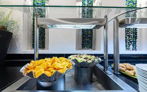 Гостям The Grand Hotel Sharm El Sheikh предоставляется завтрак «шведский стол». При The Grand Hotel Sharm El Sheikh работает ресторан, где подают блюда индийской кухни, блюда итальянской кухни и блюда мексиканской кухни. По запросу для гостей приготовят вегетарианские, безлактозные и халяльные блюда.