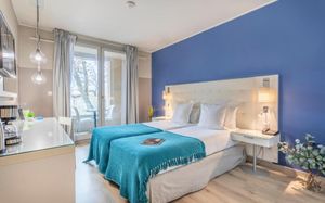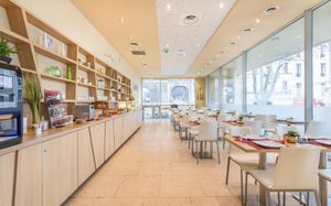 Отель очень приличный! Услужливый и вежливый персонал. В самом отеле очень приятный запах, очень чисто. Для доступа к верхним этажам есть лифты. В номере всё было прекрасно: очень удобные кровати, много светильников, зеркал, всё очень продумано и удобно. В ванной есть фен, жидкое мыло для душа. Мини-кухня оборудована микроволновкой, индукционной плитой, чайником, кофеваркой, полным комплектом посуды и столовых приборов. Имеется маленькая посудомоечная машина. На небольшом балконе уютно сидеть вечером с бокалом вина. Вокзал рядом - это и достоинство, и недостаток одновременно. Завтрак мы не брали, так как покидали отель рано утром. Но я видела накрытые столы для завтрака - всё выглядело очень прилично.