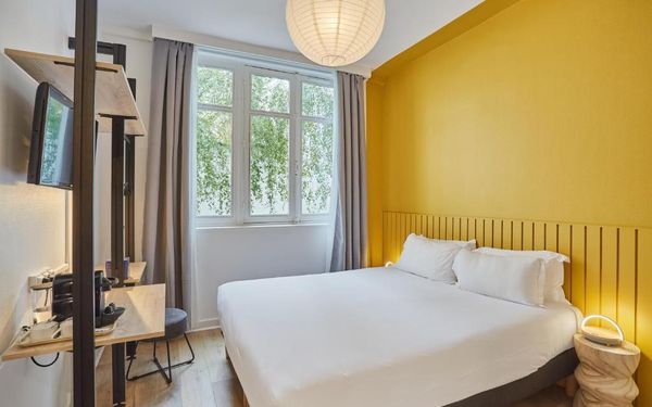 Отель очень удобно расположен относительно достопримечательностей Парижа станция метро Blanche буквально в двух шагах. Вокруг много кафе, есть большой магазин Monoprix, продуктовый и вещевой. Персонал очень приветливый, готов прийти на помощь в любом вопросе. Я приехала значительно раньше времени приема, о чем писала раньше, но мой номер был готов, и я сразу могла осуществить намеченные планы. В отеле можно оставить вещи до и после выписки бесплатно, что встречается не везде. Район очень оживленный , с ночной жизнью, но мои окна выходили на параллельную улицу, и меня ничто не беспокоило. Номер маленький, но мне он нужен был только чтобы хорошо выспаться, так что это не стало недостатком. Подаваемый в отеле за отдельную плату завтрак оправдывает свою стоимость. Благодарю отель за приятное пребывание в Париже