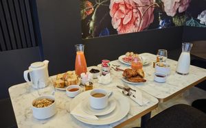 Отель находится в здании типа "колодец" и окна многих номеров выходят во внутренний дворик, причём с лестницы номера просматриваются полностью. У нас был номер на 4-м этаже с видом на соседнюю улицу с отличным "видовым" французским балконом, с видом на перекрёсток улицы Pigalle и Moulin Rouge. Нам достался такой номер, возможно, из-за того, что мы бронировали за полгода. Завтрак был отличным, не хуже чем в других отелях этого класса. Был постоянный круглосуточный доступ к кофемашине на ресепшене. Персонал дружелюбный и находился на месте круглосуточно. Правда дверь была постоянно закрыта и нужно было воспользоваться звонком.