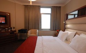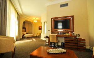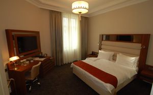 Just 150 metres from the Black Sea coast, this hotel is set in the center of Batumi. Free WiFi and a 24-hour front desk are featured at Batumi World Palace Hotel. The elegant, air-conditioned rooms of this hotel are decorated in warm colours and offer classic-style interiors. Each room includes a flat-screen TV, a minibar and a private bathroom. The hotel’s restaurant serves European and Georgian cuisine. A selection of Georgian wines is offered at the restaurant. The Medea Statue is just a 5-minute walk from the hotel, and the Alphabet Tower is 300 metres away. The picturesque Seaside Boulevard is a 7-minute walk from the hotel. Batumi Port is only 100 metres from Batumi World Palace Hotel. Batumi Train Station is 1.5 km away, and Batumi Airport is 7 km from the hotel. Free shuttle service is available.