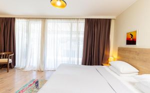 Only 3-minute walk from seafront, Hotel N16 offers accommodation in Batumi. Featuring WiFi in all rooms, the property is 800 metres from Europe Square. Guests can enjoy the on-site bar. Every room at this hotel is air conditioned and is fitted with a TV with cable channels. Featuring views of sea or city, certain rooms include a seating area for your convenience. You can also find minibar and fridge. In the private bathrooms, hairdryer and toiletries. Holy Mother Virgins Nativity Cathedral is 750 metres away. The nearest airport is Batumi International Airport, 6.7 km from Hotel N16.