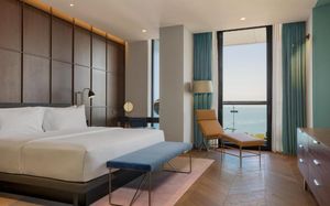Все номера отеля Le Meridien Batumi оформлены в спокойных тонах и оснащены кондиционером и системой отопления. В каждом номере среди удобств платяной шкаф, гостиный уголок и мини-бар. В собственной ванной комнате предоставляются бесплатные туалетно-косметические принадлежности, халат, тапочки и фен. Полотенца и постельное белье входят в стоимость проживания. Во всех номерах есть балкон с видом на море.