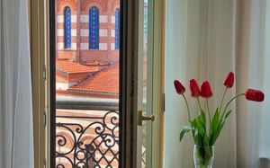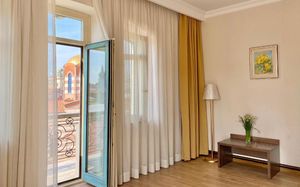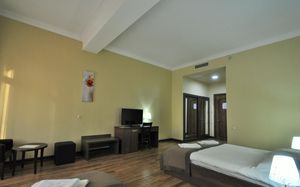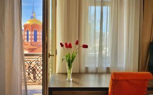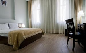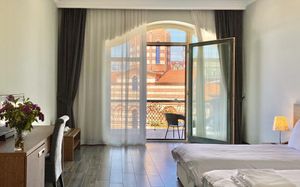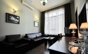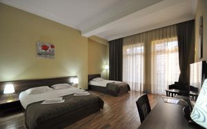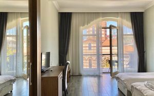 Два здания гостиницы построены в центре «старого» Батуми напротив православной церкви Святого Николая. Внутренний двор гостиницы примыкает и имеет собственный выход на городскую площадь «Пиаццу». С террасы ресторана открываются великолепные виды на батумскую бухту и окружающие горы. Недалеко от гостиницы находятся Приморский парк, Драматический театр, католическая церковь, мечеть и синагога.