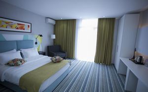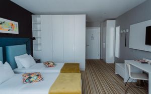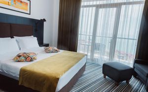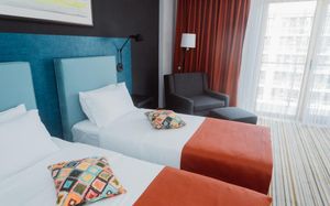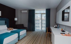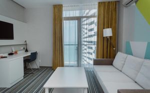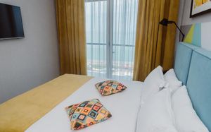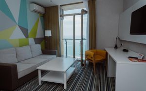 Уже второй раз останавливаюсь в этом отеле. Супер соотношение цена качество. Номера просторные, светлые с балконом с видом на море. Хорошая шумоизоляция. Уборка каждый день. Внизу отличное кафе, можно вообще никуда не ездить. Плюс в двух шагах новый современный ТЦ. Персонал очень приятный. С удовольствием приеду ещё раз сюда.