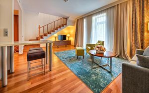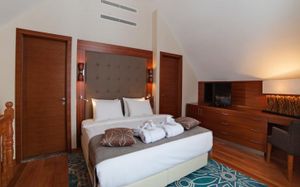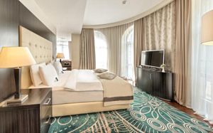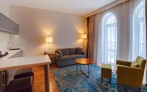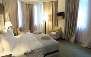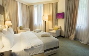 Современный интерьер номеров дополнен изящными старинными элементами декора. К услугам гостей кафе с террасой, 2 ресторана и винный бар, в которых подают разнообразные блюда.