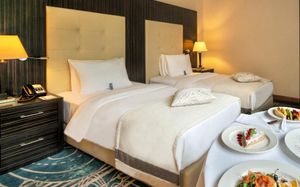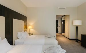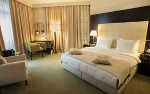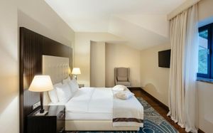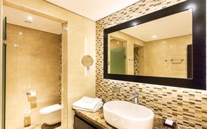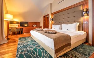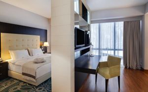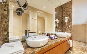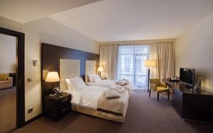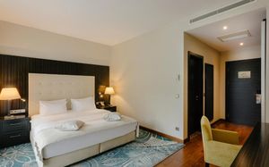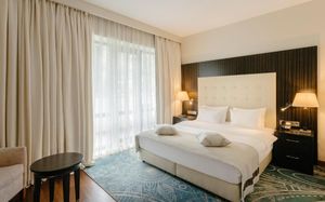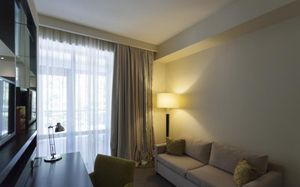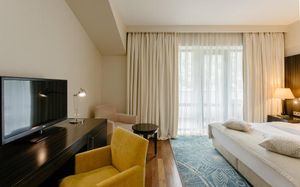 В элегантно оформленных номерах в распоряжении гостей кондиционер, рабочий стол, гостиный уголок с диваном, а также телевизор с плоским экраном и спутниковыми каналами. В собственной ванной комнате установлена ванна или душ. В номерах предоставляются тапочки, фен и бесплатные туалетно-косметические принадлежности.