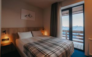 Красивый вид, отличная лаунч зона где можно поужинать в комфортной обстановке с живым камином, поиграть в настолки в комфортных креслах, с водой и теплом нет никаких проблем, отзывчивый персонал готовый решить любой вопрос, свой бугельный подъемник с которого есть выезд на основные трассы.