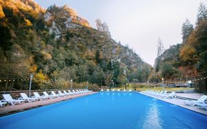 At the Sairme Resort. Guests can receive a consultation from a therapist or enjoy the mountain air on a hike. The resort offers free shuttle service to the spa centre 3.5 km away where there are 1 outdoor Termal and 1 indoor swimming pools for adults and children.
