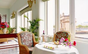 Знаменитый отель Taj Mahal Palace с видом на Аравийское море, построенный в 1903 году, возвышается напротив Ворот Индии. Территория роскошного пятизвездочного отеля занимает площадь более 1 га. К услугам гостей 9 ресторанов и спа-центр J Wellness, где предоставляется широкий спектр традиционных индийских процедур. Известный ресторан Wasabi by Morimoto специализируется на инновационной японской кухне. Также к числу гастрономических достопримечательностей относятся китайский ресторан Golden Dragon и лаундж Aquarius у бассейна. Кроме того, гости могут заказать эксклюзивный частный ужин в ресторане Chef’s Studio. Из элегантных номеров, оформленных в индийском стиле, открывается живописный вид на море, город или бассейн. В числе удобств бесплатный Wi-Fi, хорошо укомплектованный мини-бар, телевизор с 32-дюймовым плоским экраном и шикарная ванная комната. Гостям предоставляются круглосуточные услуги дворецкого. Услуги по аренде и обслуживанию яхт предоставляются за дополнительную плату во время парусного сезона. В спа-центре Taj Salon можно побаловать себя роскошными процедурами, искупаться в ландшафтном бассейне или сделать роскошные покупки в отеле. Сотрудники отеля помогут заказать столик в ресторанах, организовать индивидуальные туры и экскурсии по историческому королевскому крылу дворца. Отель расположен в популярном районе Колаба, всего в 10 минутах ходьбы от Национальной галереи современного искусства. Расстояние до международного аэропорта имени Чатрапати Шиваджи составляет 26 км.