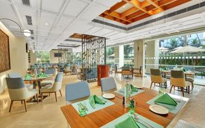 Гостям предлагается завтрак «шведский стол», континентальный завтрак или полный английский/ирландский завтрак. При Holiday Inn Goa Candolim работает ресторан, где подают блюда индийской кухни, пиццу и морепродукты. По запросу для гостей приготовят вегетарианские, безлактозные и веганские блюда.