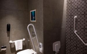 Тактильные знаки Низкая раковина Высокий туалет Туалет с поручнями Подходит для гостей в инвалидных креслах Лифт для доступа к верхним этажам