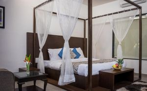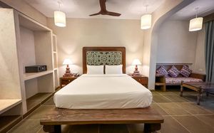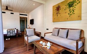 Современный курортный отель Riva Beach Resort предлагает коттеджи с кондиционером, балконом и бесплатным Wi-Fi. Отель находится всего в 50 метрах от пляжа Мандрем и располагает собственным спа-салоном и рестораном под открытым небом. Пляж Арамболь находится в 2 км от курортного отеля Riva Beach Resort. Расстояние до железнодорожного вокзала Пернема и автобусного вокзала Мапуса составляет 20 км. Аэропорт Даболим находится примерно в 70 км от курорта. Коттеджи оборудованы телевизором с плоским экраном и спутниковыми каналами, а также мини-баром. Обставлены бамбуковой мебелью и располагают собственной ванной комнатой с душем и бесплатными туалетно-косметическими принадлежностями. На круглосуточной стойке регистрации можно воспользоваться камерой хранения багажа и сейфом. Во время пребывания в отеле гости могут заказать расслабляющий массаж или приготовить барбекю на открытом воздухе. В ресторане курорта подают блюда индийской, китайской и европейской кухни. 31 декабря 2022 года будет проведено новогоднее мероприятие, стоимость которого необходимо будет оплатить на месте. В случае превышения максимальной вместимости номера за дополнительных гостей, включая детей, взимается дополнительная плата.