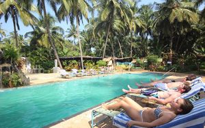 Alagoa Resort расположен на юге Гоа, на пляже Беталбатим, в 20 км от международного аэропорта Даболим, в 9 км от города Маргао. Отель занимает одно основное 4-х этажное здание, лифта нет, и один одноэтажный коттедж. На территории есть бассейн с пресной водой, бесплатная парковка, бесплатный Wi-Fi в номерах, лобби, ресторане.