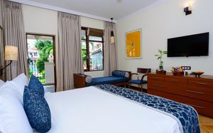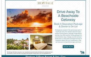 Nestled along the pristine shores of Arossim Beach, Heritage Village Resort & Spa, Goa, is a 5-star boutique resort that beautifully blends Portuguese-inspired architecture with modern luxury. Just a 2-minute walk from the beach, and a short drive from Dabolim Airport and Madgaon Station, the resort offers an idyllic escape in South Goa. Guests can indulge in curated experiences, wellness treatments, and a variety of dining options, making it perfect for families, couples, and solo travelers alike.
