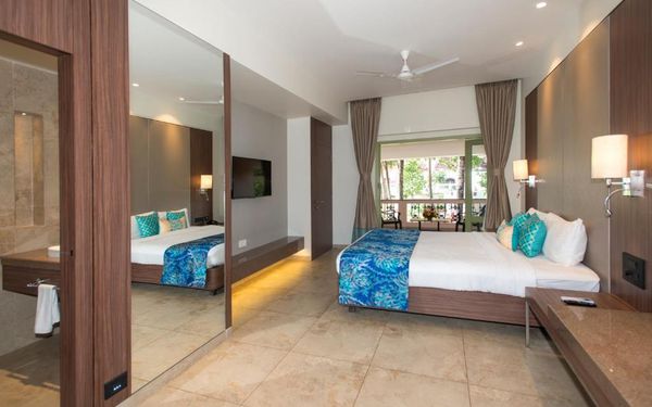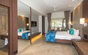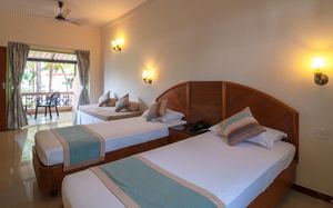 Отличное расположение возле чистого, малолюдного пляжа. Мы жили в отдаленном корпусе, где были хорошие апартаменты. От них до ресепшн возили машинки, которые сразу по просьбе приезжали. В целом очень вежливый и приятный персонал. Постель и полотенца меняли каждый день, ставили воду, выносили мусор, в общем приятно нас удивили. Деньги по пути на пляж меняли у Саши, который торгует шикарными минералами, у него самый выгодный курс обмена валют. На пляже питались в Joel’s shack, Мохит и его ребята очень скрасили наш отдых своим хорошим сервисом и вкусными блюдами. Отъезд был рано утром, мы попросили ланч-бокс с собой и его действительно вовремя дали, он был прекрасен: сендвич свежайший, яйцо, мафин, свеже нарезанная папайя и сок. Море было очень теплое, влажность терпимая. Завтраки вполне приличные в отеле. При необходимости можно попросить контакты хорошего такси, очень надежные ребята. Анимацию оценить не могу, так как возле бассейна не тусили.