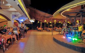 Отличные кафе прямо на пляже. Ужинали всегда в кафе при выходе на пляж справа. Всегда есть рыба, морепродукты. Можно заранее договориться о каком-то специальном блюде. Конечно, на юге не так много интересного, как на севере. Однако, чистейший пляж, песок под ногами хрустит как крахмал. Вечером сидел и с удовольствием ерзал ногами по песку)