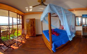 Люкс-шатры располагают балконом и гостиной зоной. Собственная ванная комната с душем укомплектована бесплатными туалетно-косметическими принадлежностями. Из окон открывается вид на море и сад. Кроме того, в распоряжении гостей сейф, гладильные принадлежности и вентилятор.