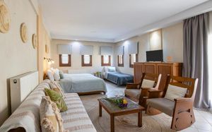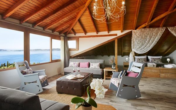 Каждый номер отличается индивидуальным декором и стилем. С просторного балкона открывается красивый вид на Уранополис. В числе удобств — гостиная, кондиционер, холодильник, принадлежности для чая/кофе, плазменный телевизор со спутниковыми каналами и туалетно-косметические принадлежности.