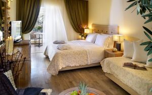 В ресторане высокой кухни отеля посетители могут насладиться изысканными блюдами, приготовленными шеф-поваром отеля. В ресторанах отеля подают традиционно греческую и международную кухню, приготовленную из высококачественных ингредиентов.