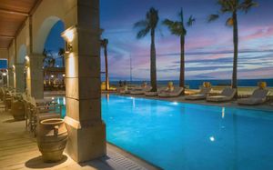 Located right on the white sandy beach of Rethymno, the 4-star Grecotel Plaza Beach House features 2 freshwater pools, a children's pool and a spa centre with covered pool. A sea-view restaurant and a poolside bar are also available on site. Free WiFi access is provided in the public areas.
