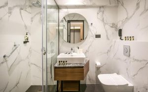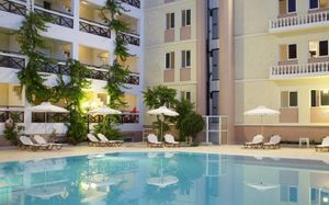 5-звездочный отель Hersonissos Palace расположен в районе Лименас Херсониссу, всего в 60 метрах от пляжа. К услугам гостей крытый и 2 открытых бассейна, ресторан и теннисный корт. Номера отеля Hersonissos Palace оформлены в элегантном стиле и оборудованы кондиционером. Из их окон открывается вид на море, бассейн или сад. Они оснащены спутниковым телевидением, мини-холодильник и гостиной зоной. В ресторане отеля, оформленном в классическом стиле, подают обед и ужин в форме "шведского стола". Из расположенного на 2 этаже лаундж-бара открывается панорамный вид на Критское море. В отеле работают также бар у бассейна и традиционная кофейня у второго бассейна. В отеле Hersonissos Palace есть сауна, где можно расслабиться, а также полностью оборудованный тренажерный зал для любителей активного отдыха. За несколько минут можно прогуляться до центра города Херсониссос с широким выбором ночных клубов. Ираклион расположен в 25 км. К услугам гостей бесплатный Wi-Fi и бесплатная парковка.