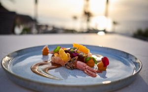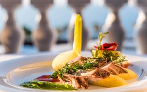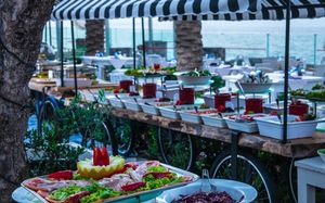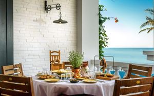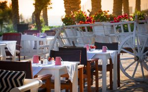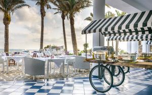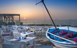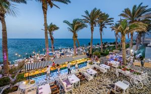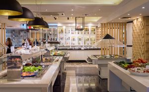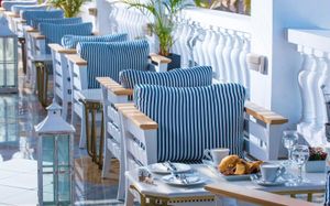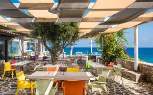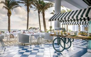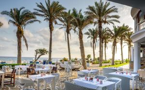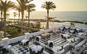 Рестораны a la carte/шведский стол:Ресторан Brasserie Mosaic 12:30 -14:30 Обед «шведский стол». 18:30 -21:30 Большой шведский стол с ежедневными кулинарными шоу различной тематики (итальянская, средиземноморская, марокканская, азиатская, мексиканская), вегетарианские, веганские блюда Ресторан Payot у бассейна (с 1 июня). Ресторан а-ля карт с блюдами южноамериканской кухни Барбекю «On the Rocksх». Ресторан а-ля карт на пляже. Блюда из мяса, рыбы и морепродуктов Итальянский Deli. Ресторан а-ля карт итальянской и средиземноморской кухни Flames (начиная с 1 июня). Ресторан а-ля карт, мясная арабская кухня Pescetarian(начиная с 1 июня). Ресторан а-ля карт, где подают рыбу и морепродукты Азиатский (начиная с 1 июня). Ресторан а-ля карт с азиатской кухней Ресторан Ariadni «Вкус Крита»