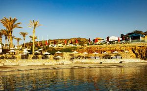 Отель расположен в 43 км восточнее от аэропорта г. Ираклион, в 1 км от рыба...
