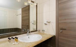 Some air-conditioned rooms and bungalows at Palmariva Beach Hotel open to a furnished balcony with Euboean Gulf or pool views. Each unit features a satellite TV, a fridge, and a safe. Private bathrooms are stocked with complimentary toiletries, bathrobes and a hairdryer.